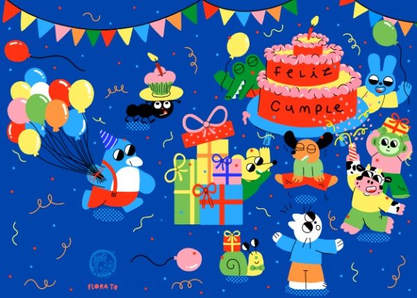 Tarjeta de cumpleaños que hicimos junto a La Postalera.